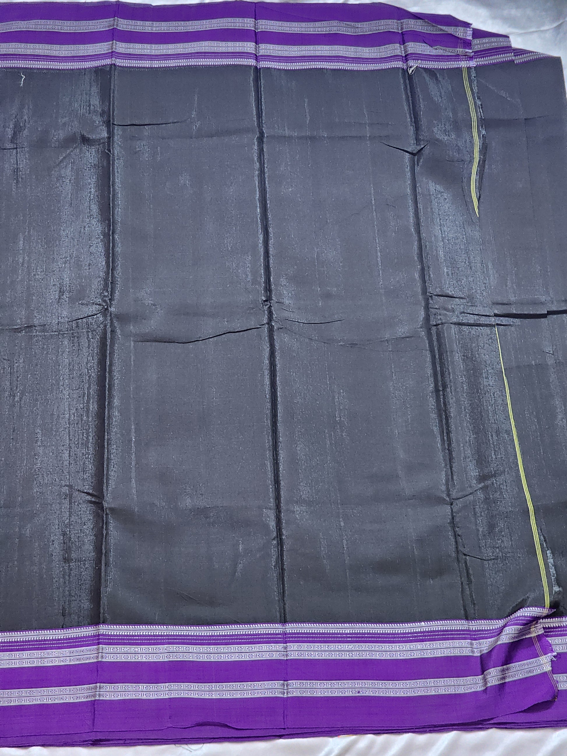 Black Ilkal cotton-viscose blend Saree with Royal Purple and White Traditional Border