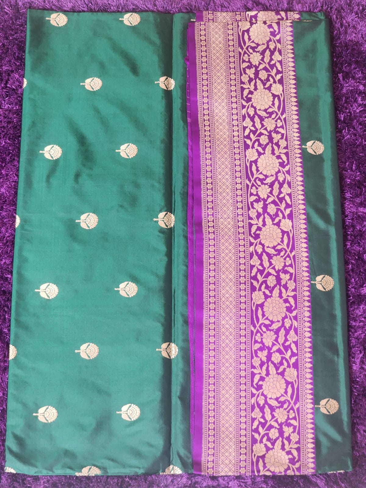 Bottle Green Banarasi Silk Saree with Delicate Gold Motifs