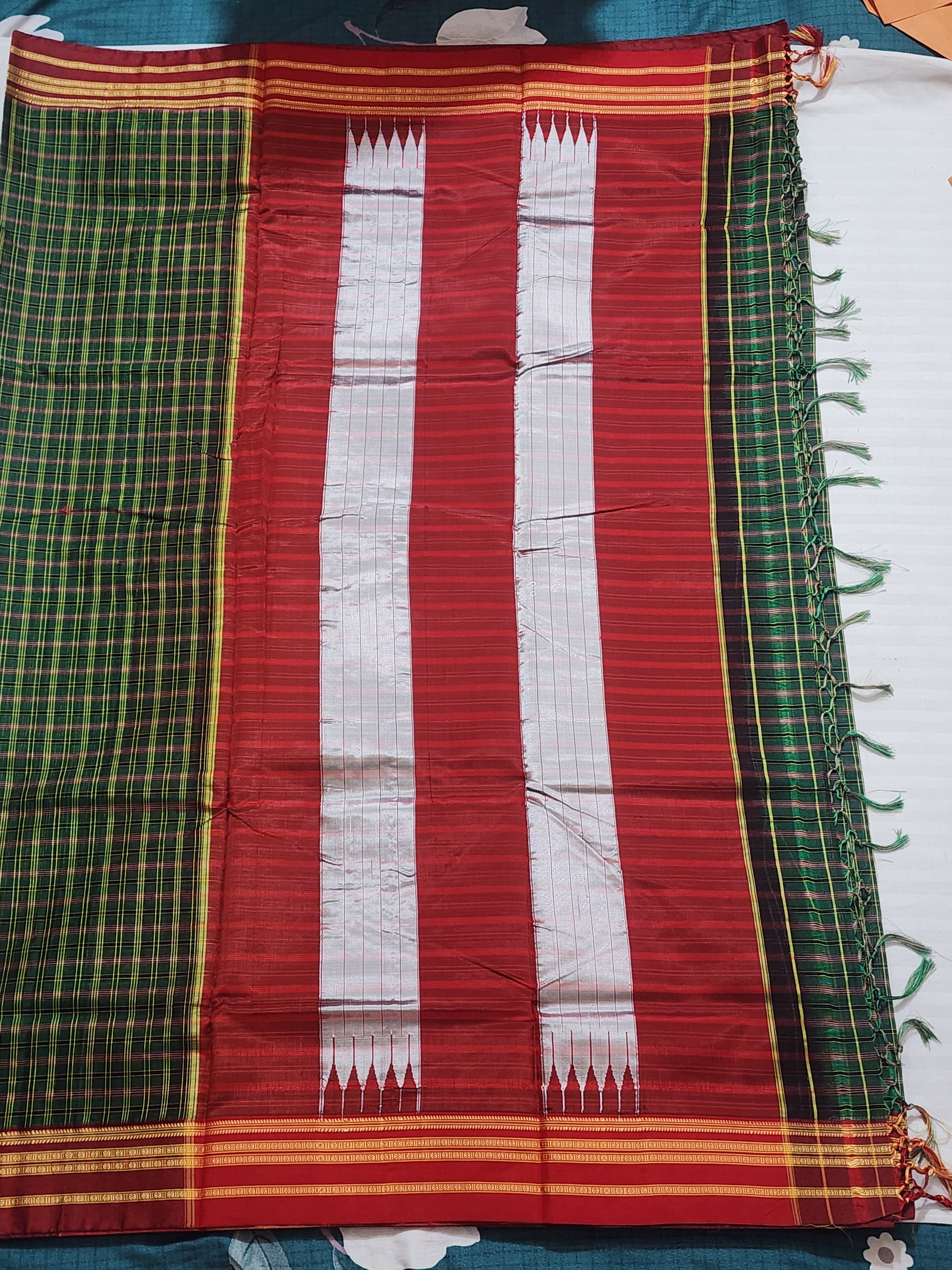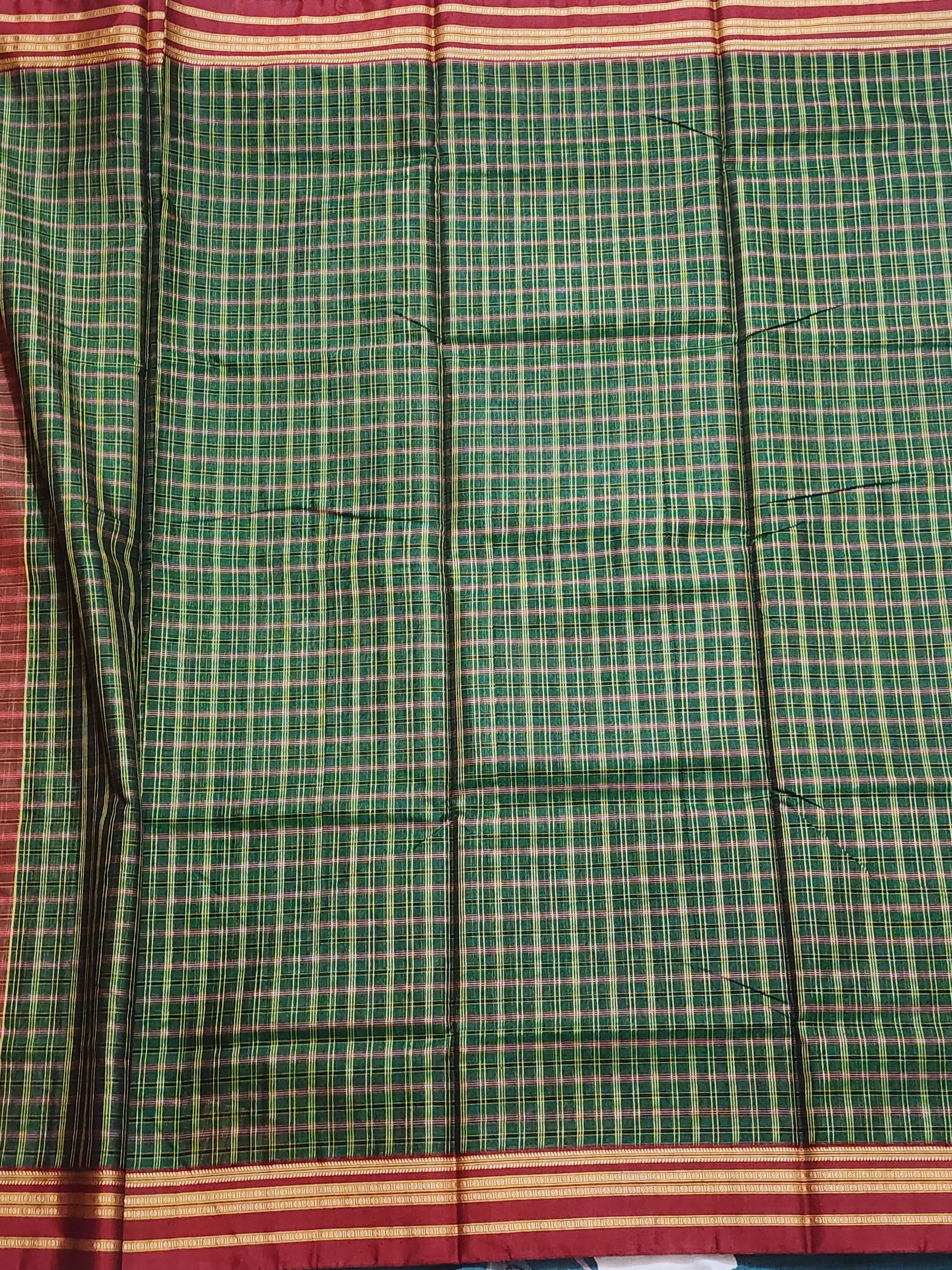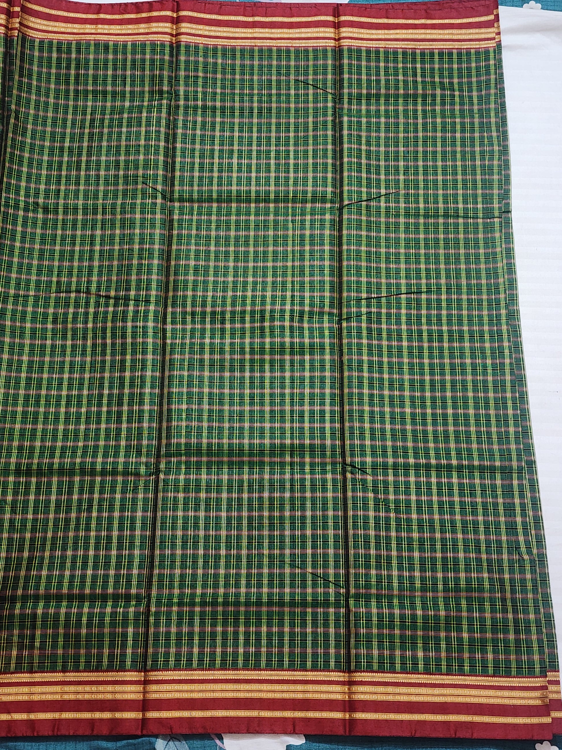 Green Maroon Ilkal Cotton Checks Saree with Gaadi Border