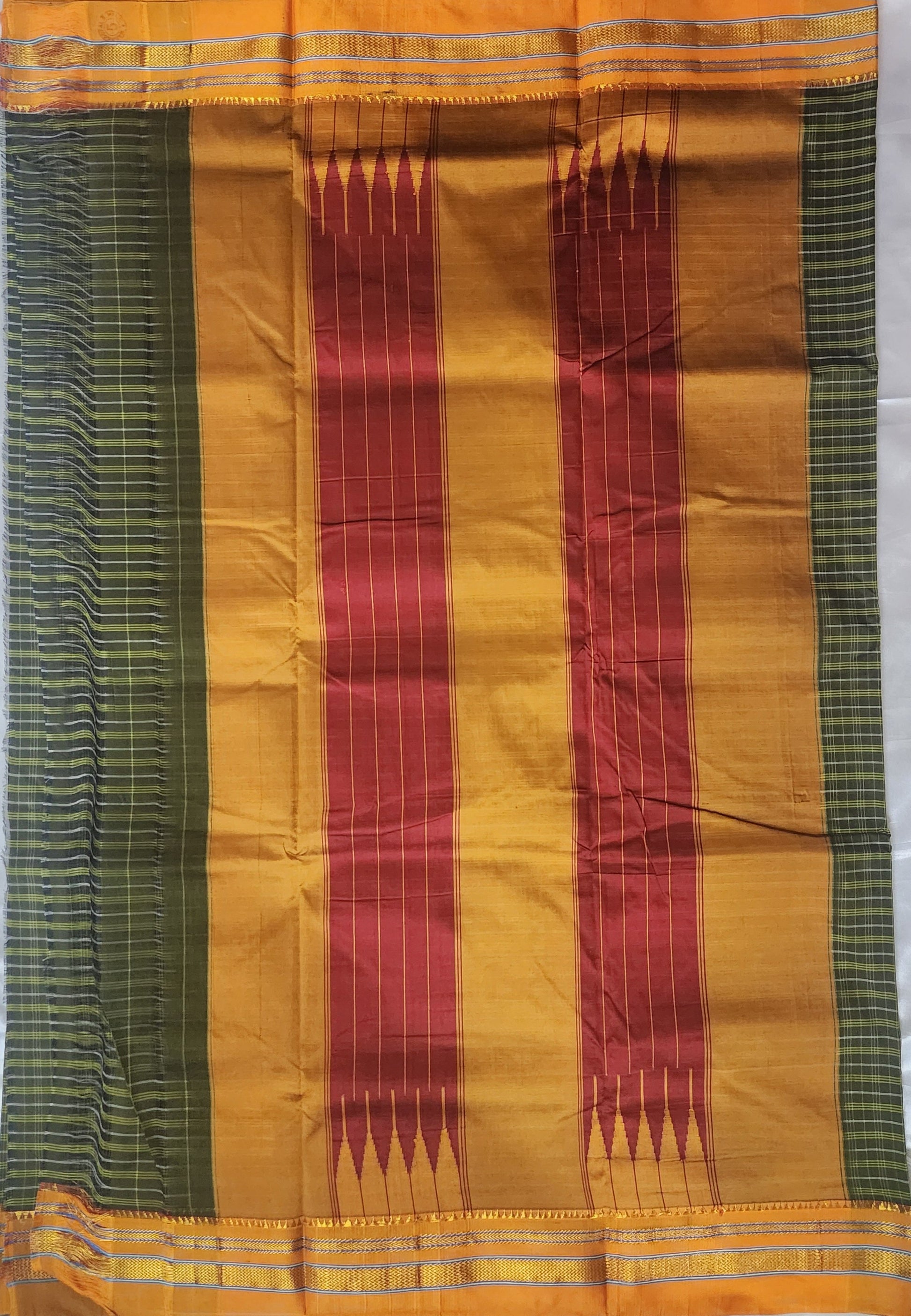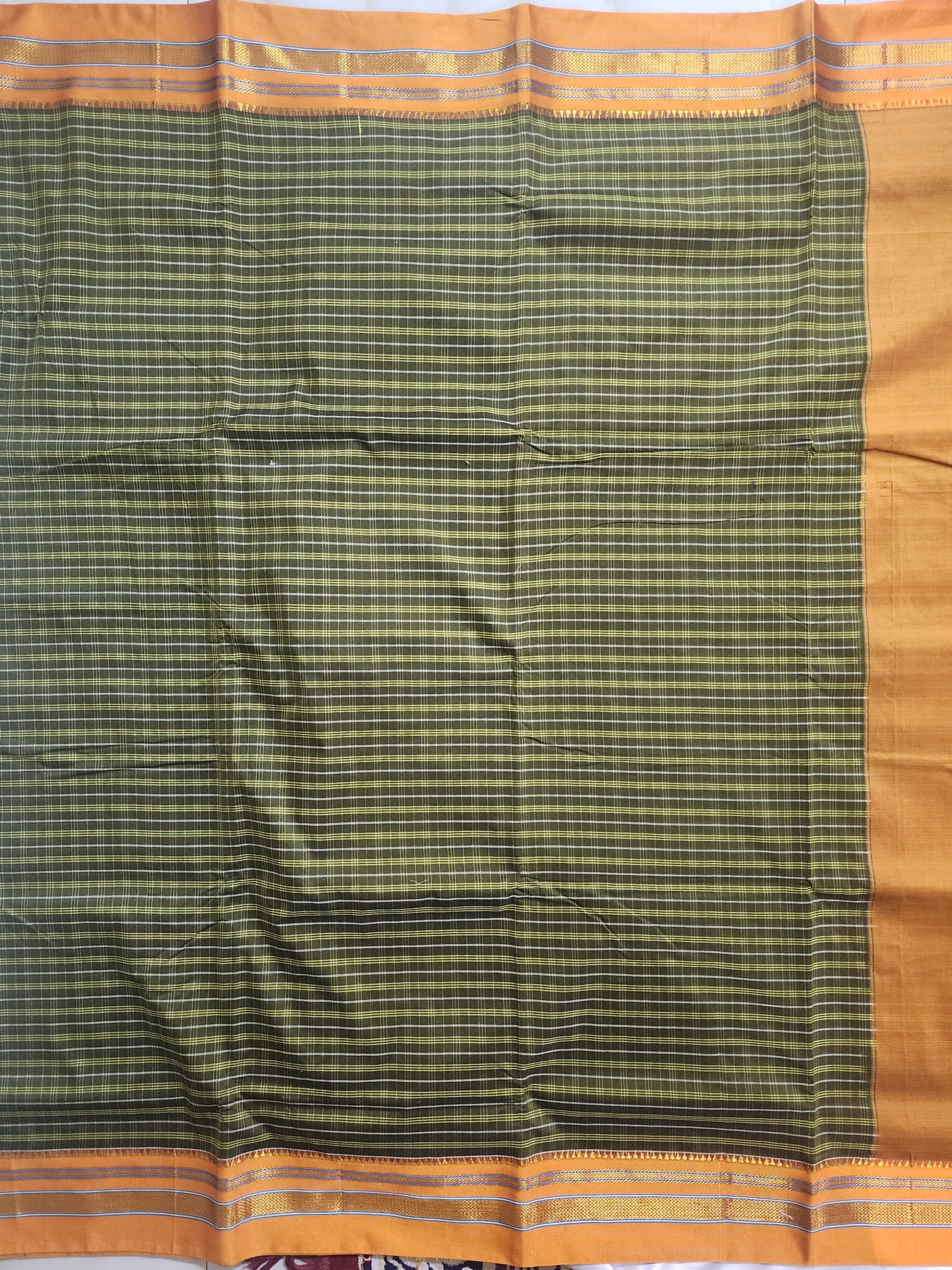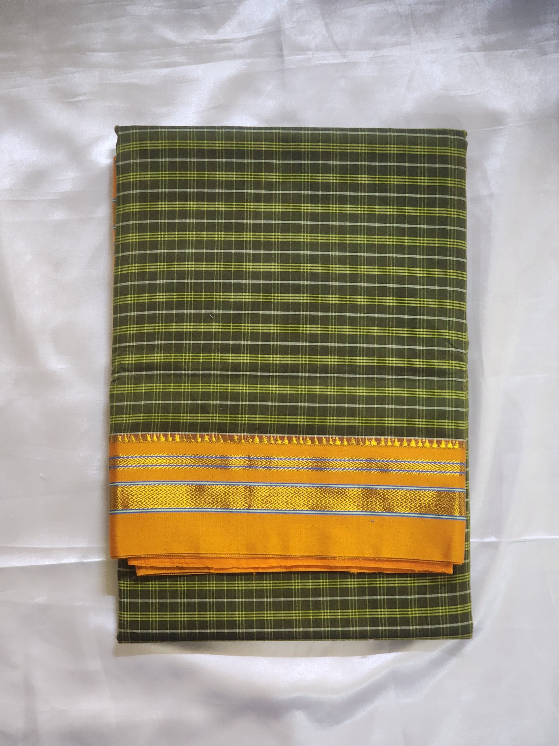 Green yelliowIlkal Cotton Checks Saree with Gaadi Border