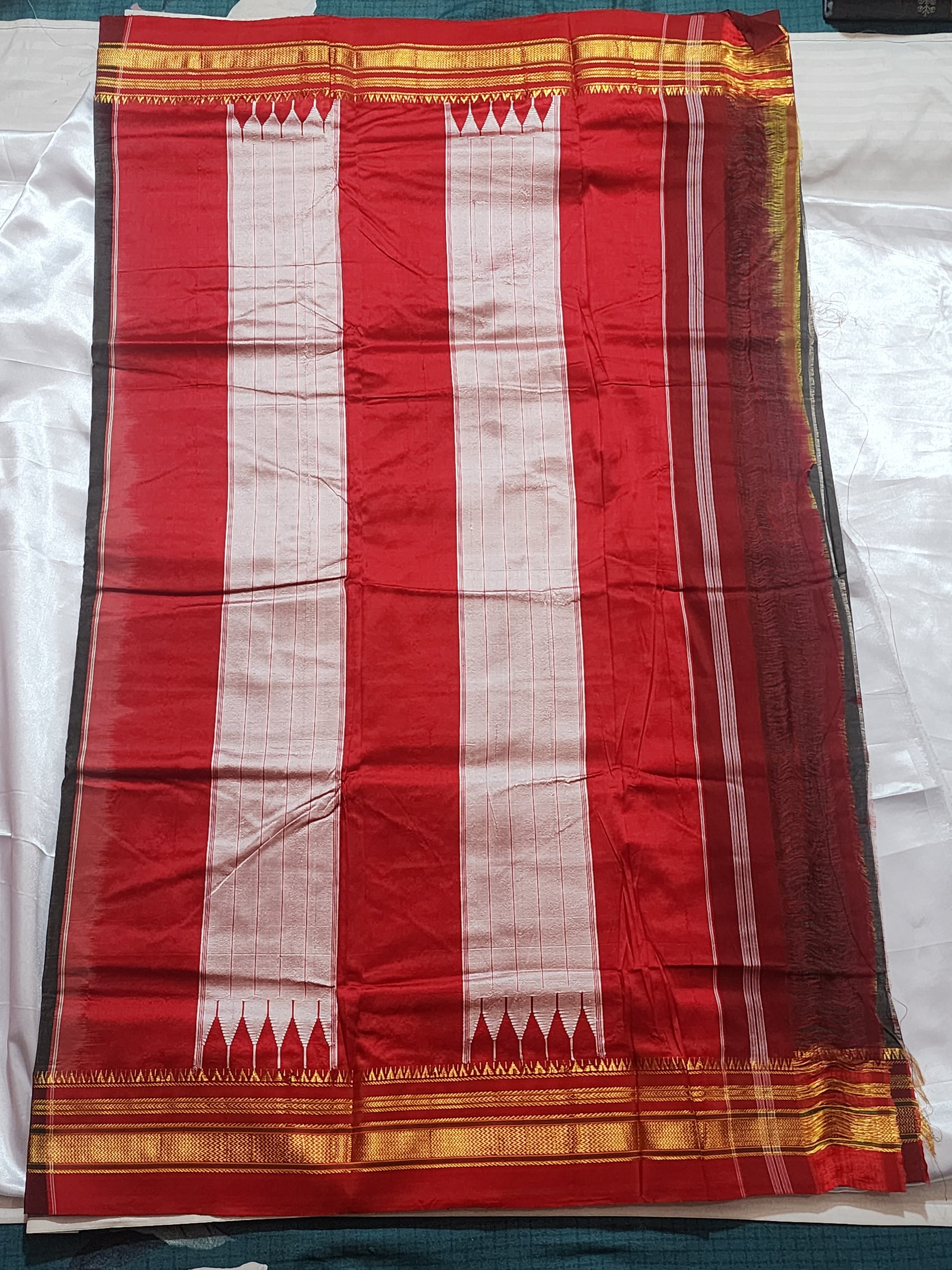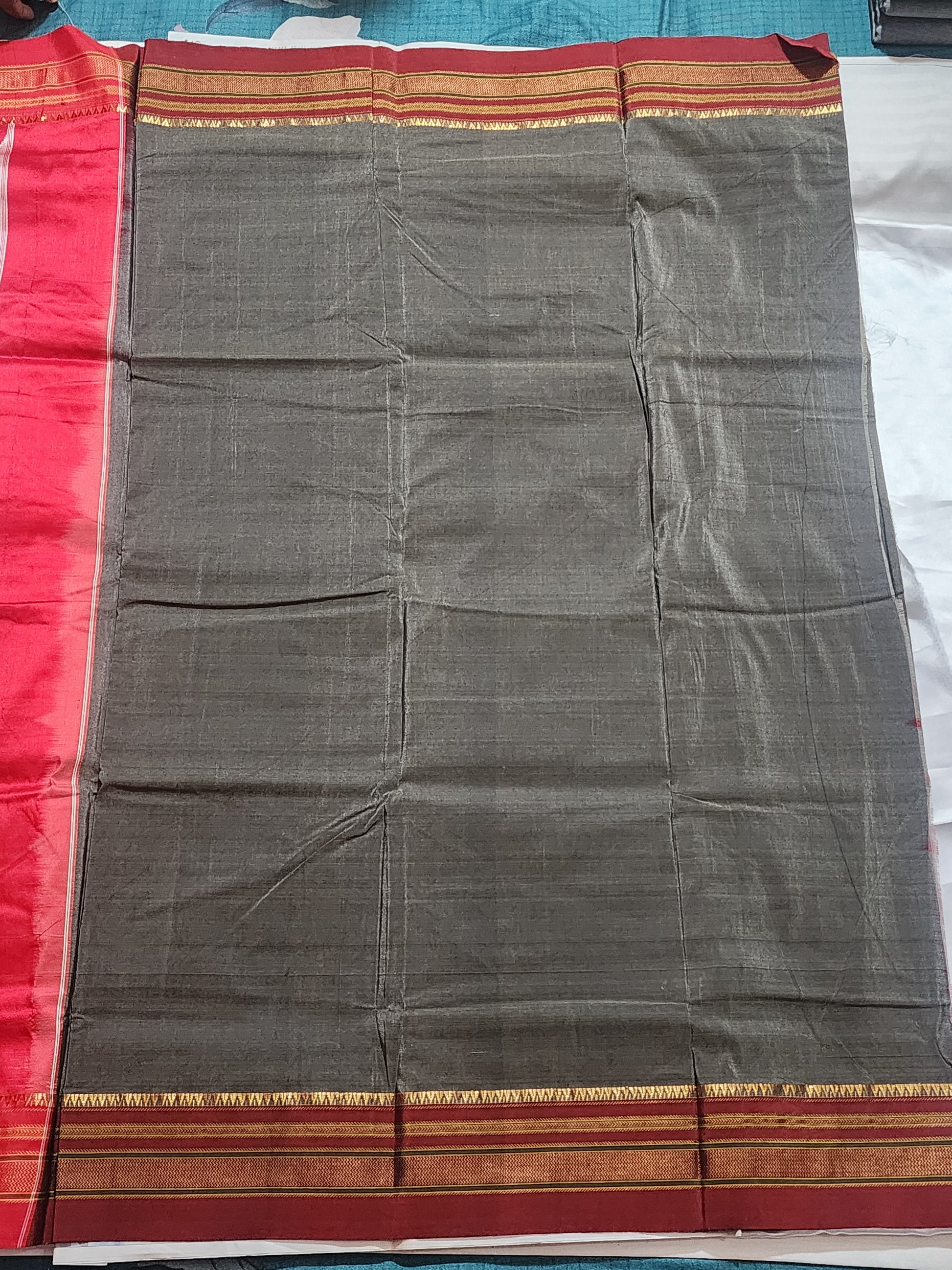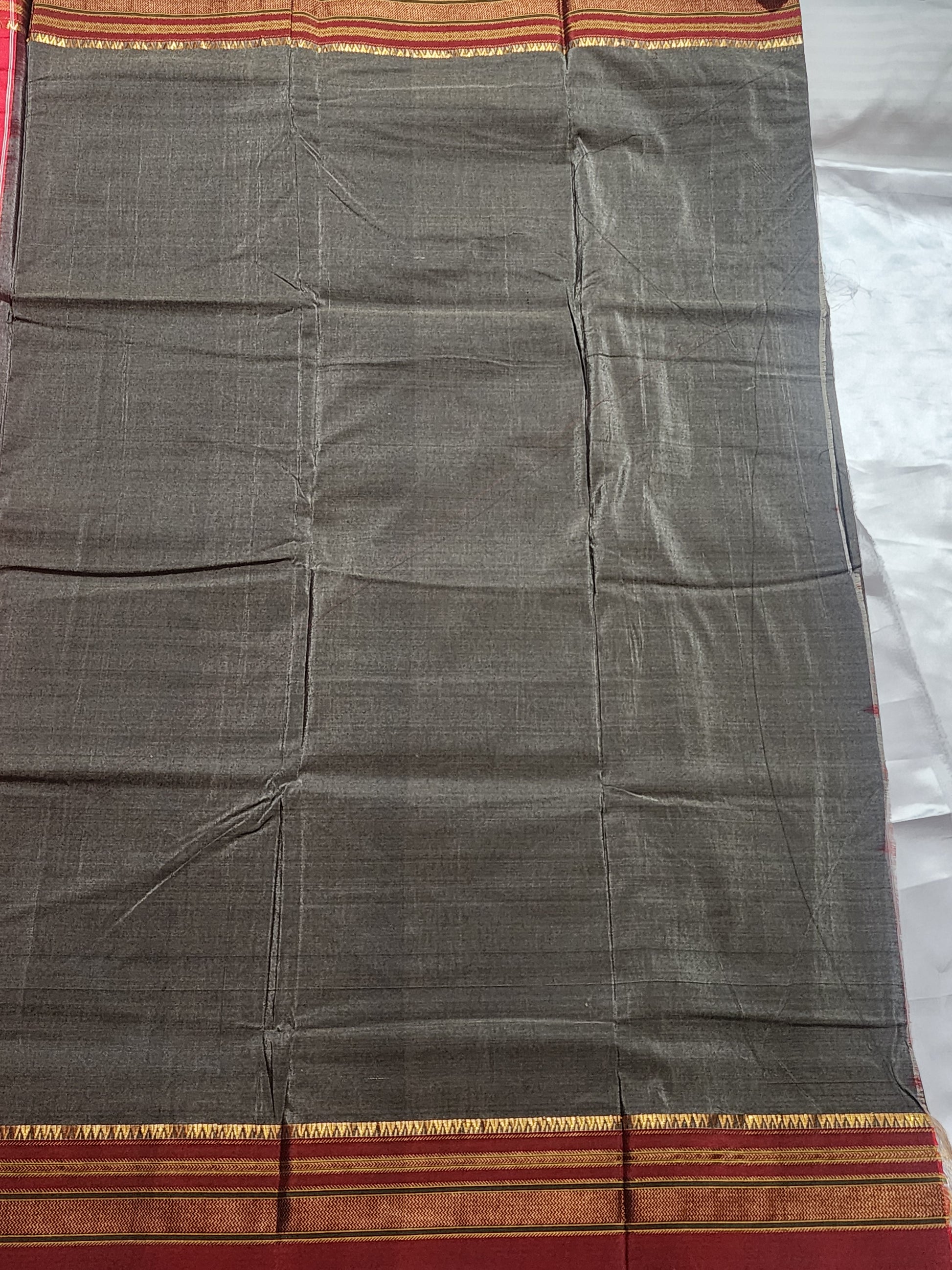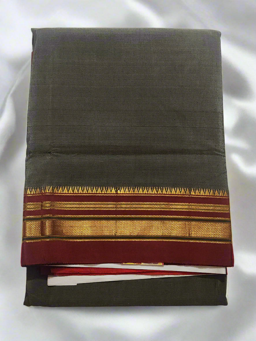 Grey Maroon Ilkal Silk Saree with Traditional Thode Dhadi Border