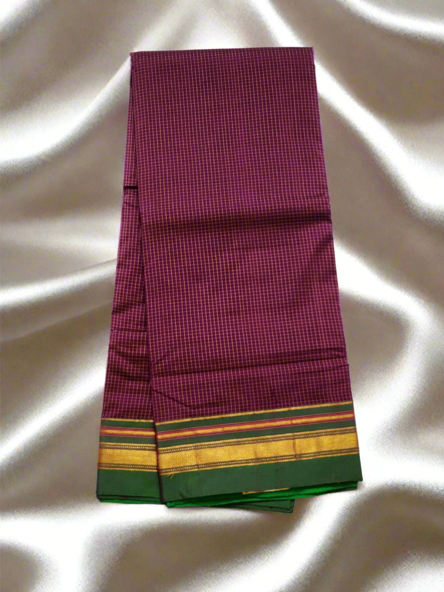 Ilkal Cotton Silk Saree in Maroon Checks with Green & Yellow Traditional Border